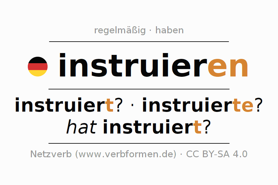 - Präteritum: instruierte ich?, instruiertest du?, instruierte er?, instruierten wir?, instruiertet ihr?, instruierten sie?