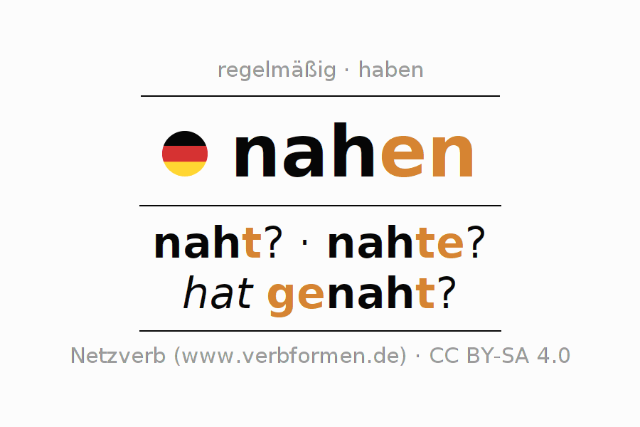 - Präsens: nahe ich?, nahest du?, nahe er?, nah(e)n wir?, nahet ihr?, nah(e)n sie?