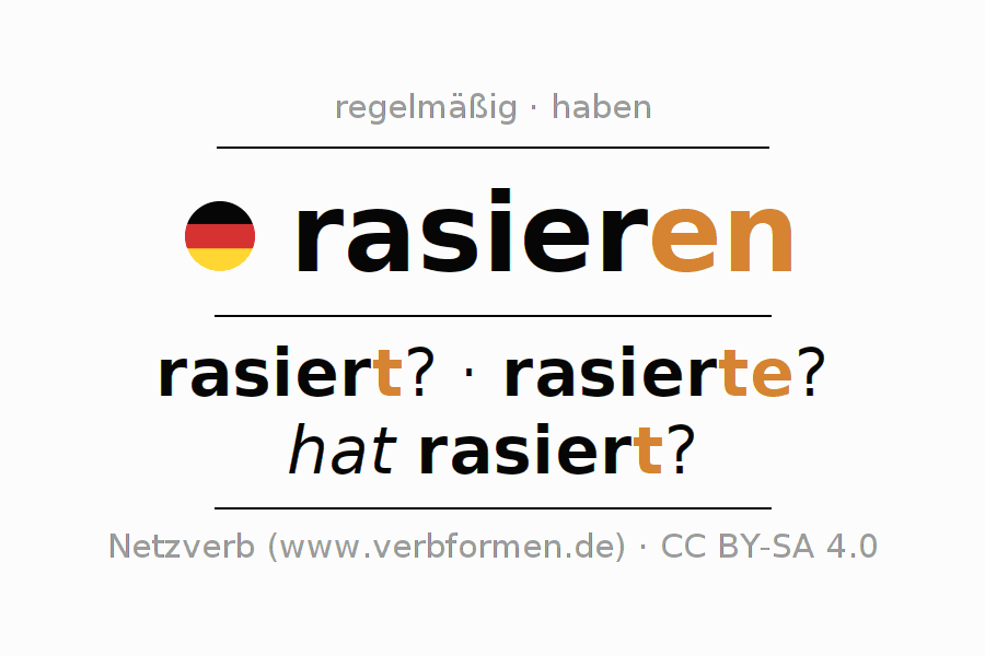 - Präteritum: rasierte ich?, rasiertest du?, rasierte er?, rasierten wir?, rasiertet ihr?, rasierten sie?