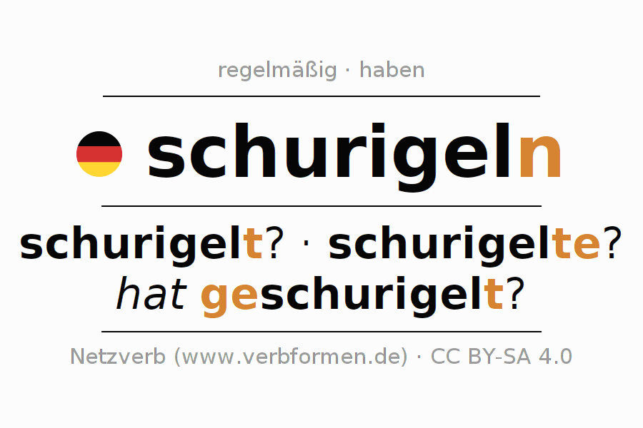 - Perfekt: habe ich geschurigelt?, hast du geschurigelt?, hat er geschurigelt?, haben wir geschurigelt?, habt ihr geschurigelt?, haben sie geschurigelt?