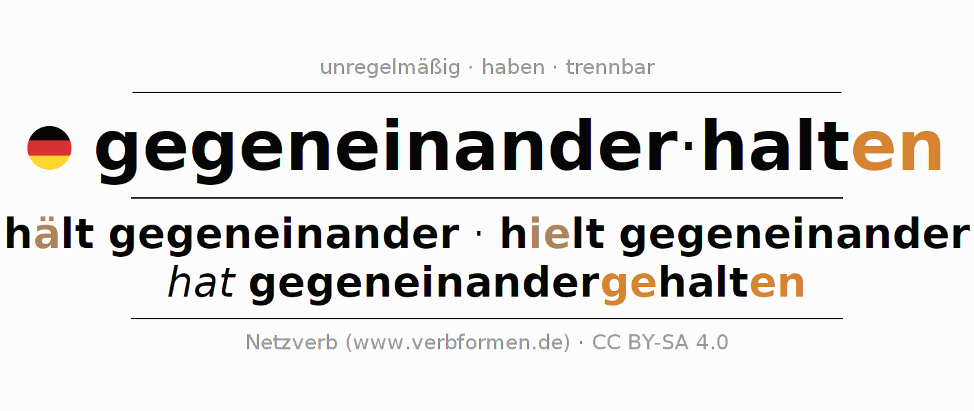 hält gegeneinander · hielt gegeneinander · hat gegeneinandergehalten