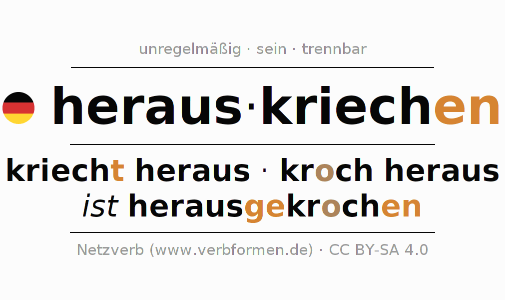 | ich | kriech(e) heraus | kroch heraus | krieche heraus | kröche heraus | - |