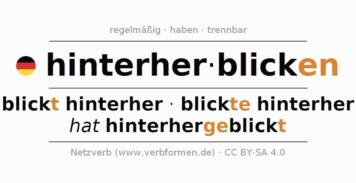 - Infinitiv II: hinterhergeblickt haben, hinterhergeblickt zu haben
