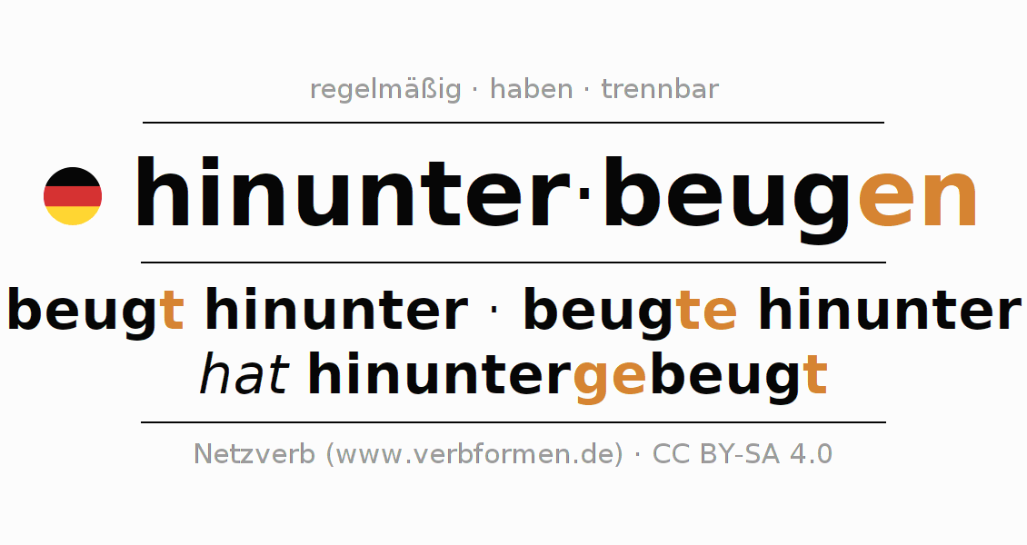 beugt hinunter · beugte hinunter · hat hinuntergebeugt