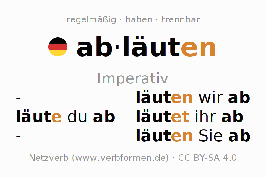Das Verb abläuten vollständig in allen Personen und Numeri im Imperativ Präsens konjugiert