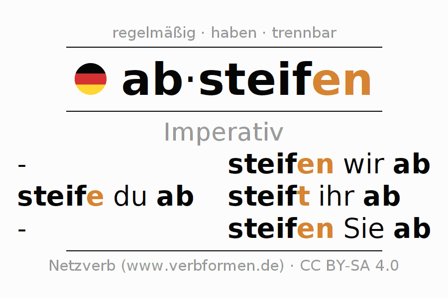 Das Verb absteifen vollständig in allen Personen und Numeri im Imperativ Präsens konjugiert