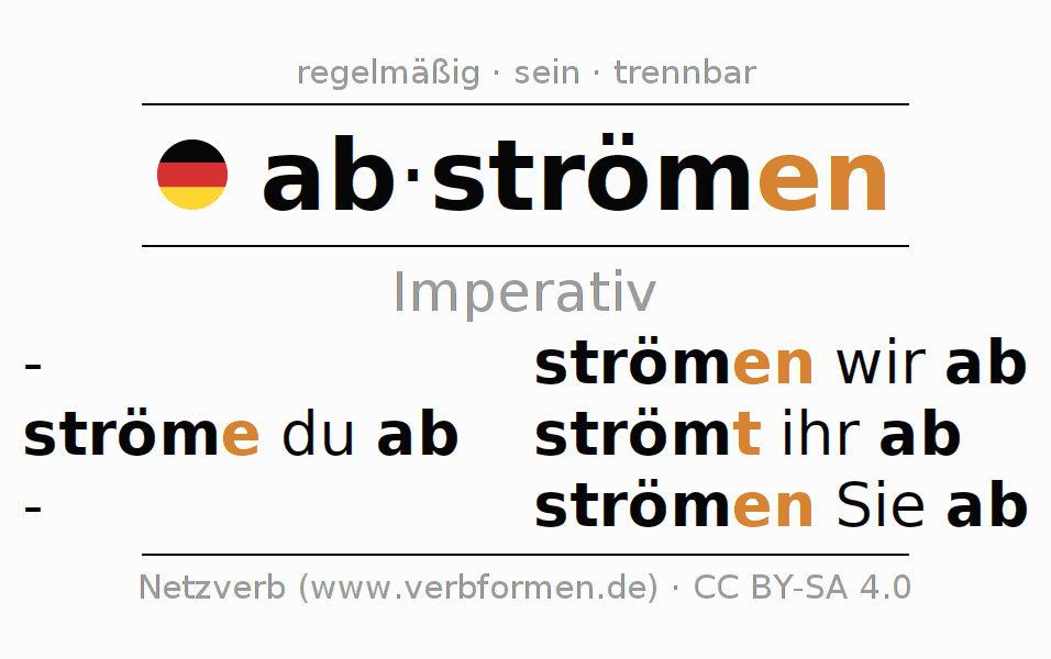 Das Verb abströmen vollständig in allen Personen und Numeri im Imperativ Präsens konjugiert