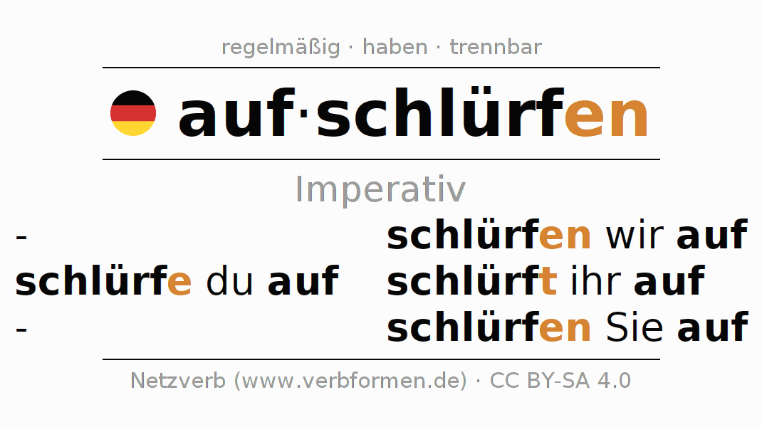 Das Verb aufschlürfen vollständig in allen Personen und Numeri im Imperativ Präsens konjugiert
