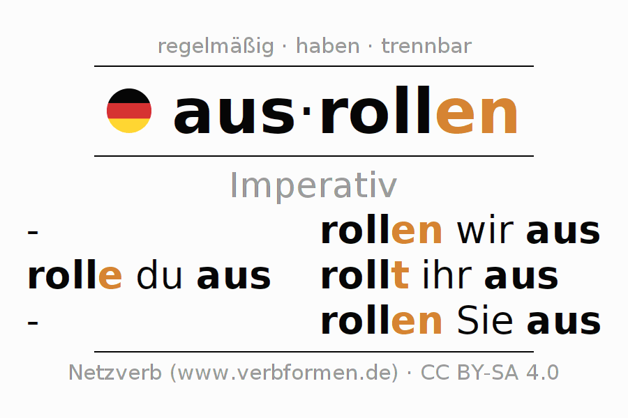 Das Verb ausrollen vollständig in allen Personen und Numeri im Imperativ Präsens konjugiert