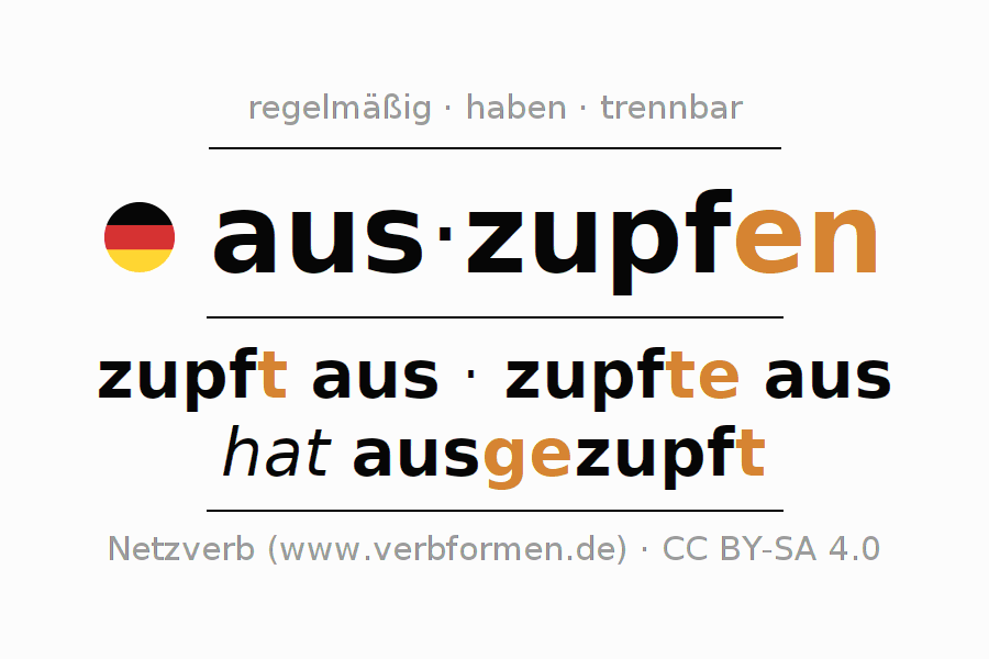 Das Verb auszupfen vollständig in allen Personen und Numeri im Imperativ Präsens konjugiert