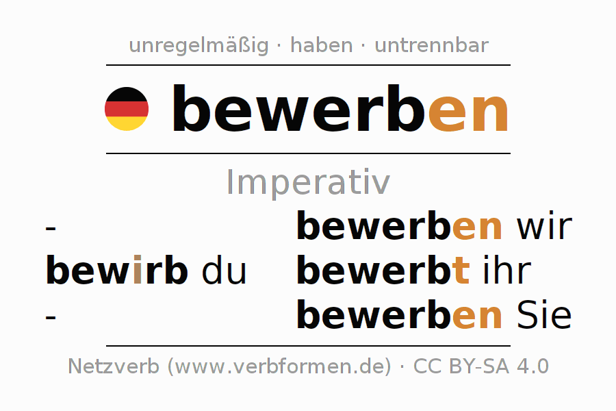 Das Verb bewerben vollständig in allen Personen und Numeri im Imperativ Präsens konjugiert