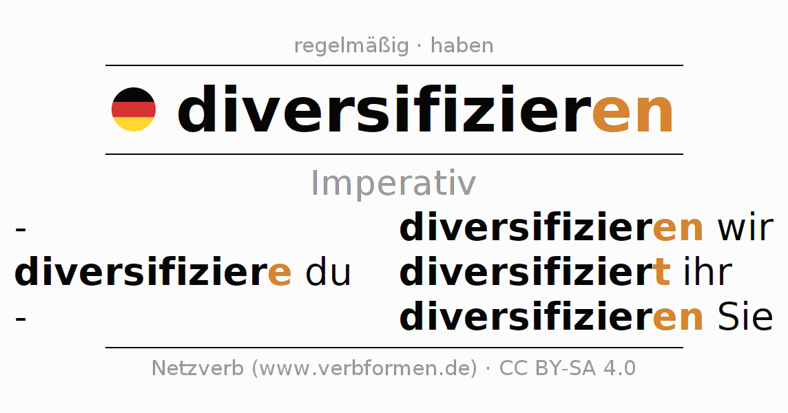 Das Verb diversifizieren vollständig in allen Personen und Numeri im Imperativ Präsens konjugiert