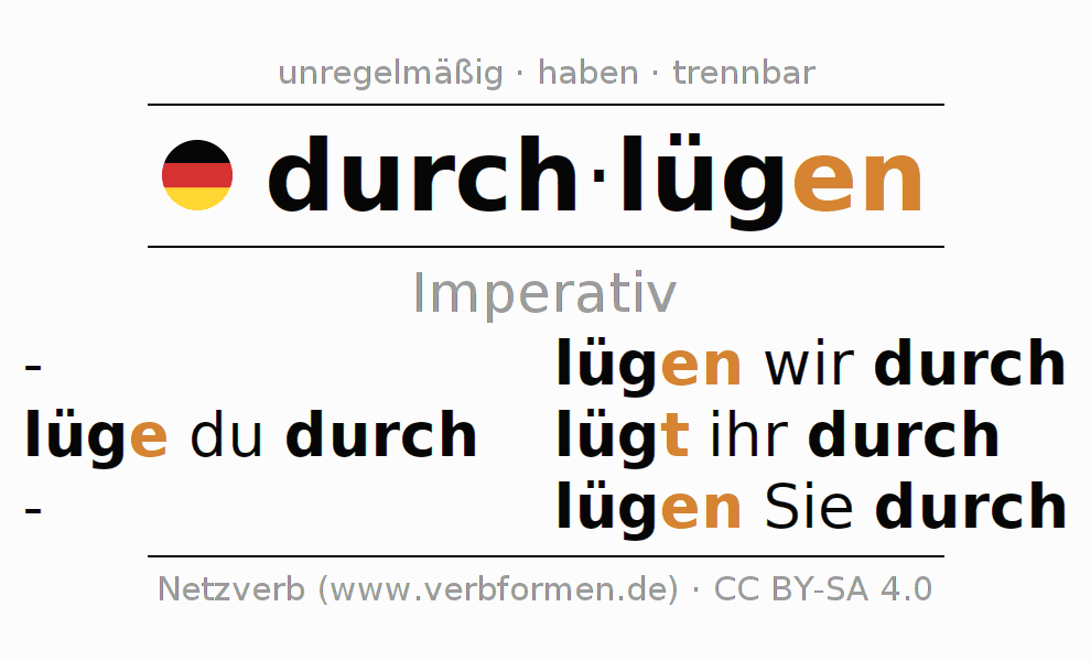 Das Verb durchlügen vollständig in allen Personen und Numeri im Imperativ Präsens konjugiert