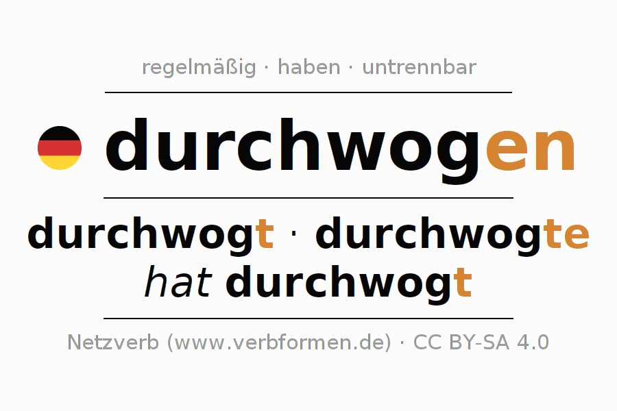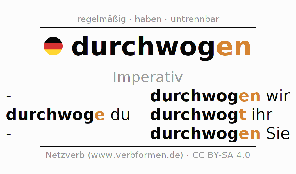 Das Verb durchwogen vollständig in allen Personen und Numeri im Imperativ Präsens konjugiert