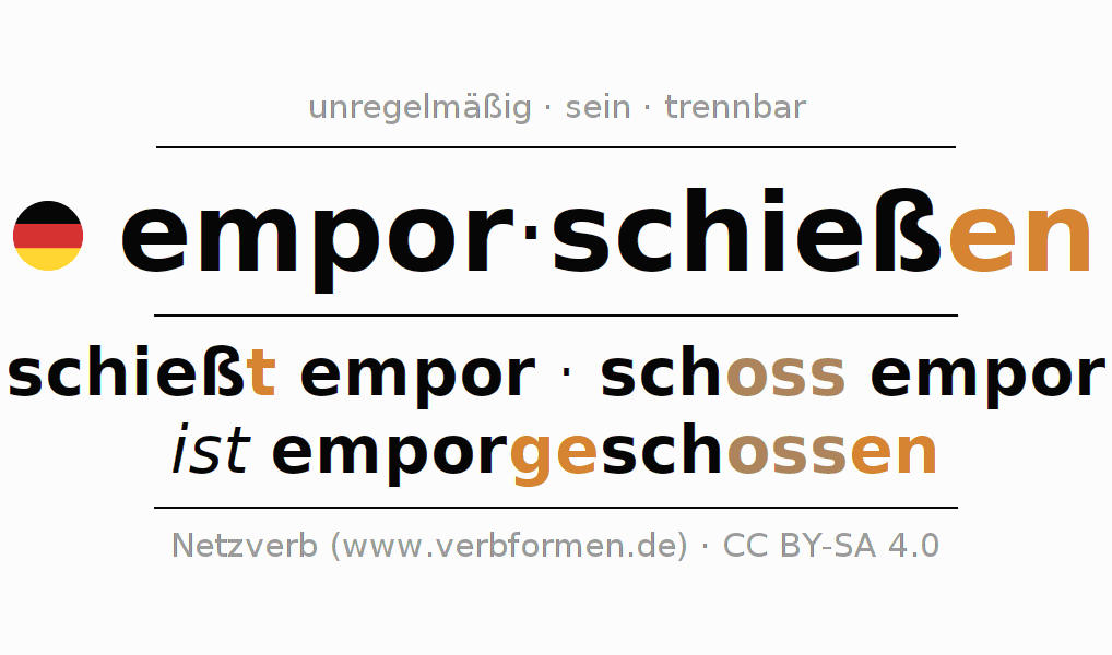 Das Verb emporschießen vollständig in allen Personen und Numeri im Imperativ Präsens konjugiert