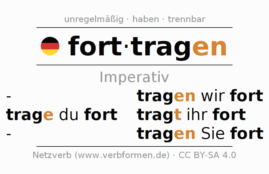 Das Verb forttragen vollständig in allen Personen und Numeri im Imperativ Präsens konjugiert