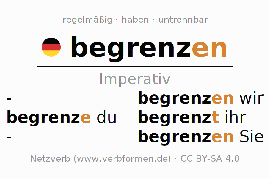 Das Verb begrenzen vollständig in allen Personen und Numeri im Imperativ Präsens konjugiert