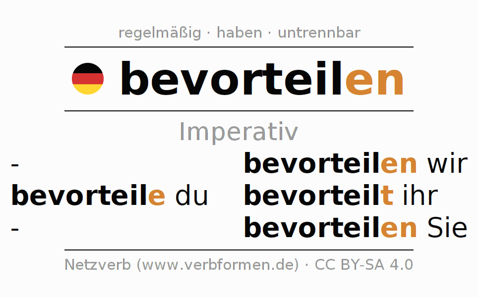 Das Verb bevorteilen vollständig in allen Personen und Numeri im Imperativ Präsens konjugiert