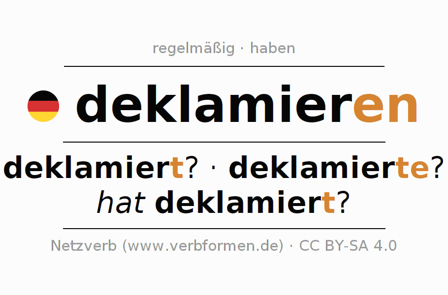 Das Verb deklamieren vollständig in allen Personen und Numeri im Imperativ Präsens konjugiert