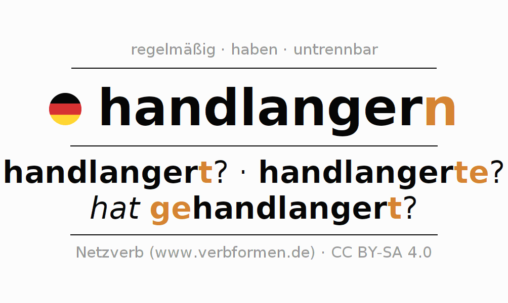 Das Verb handlangern vollständig in allen Personen und Numeri im Imperativ Präsens konjugiert