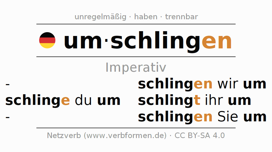 Das Verb um-schlingen vollständig in allen Personen und Numeri im Imperativ Präsens konjugiert