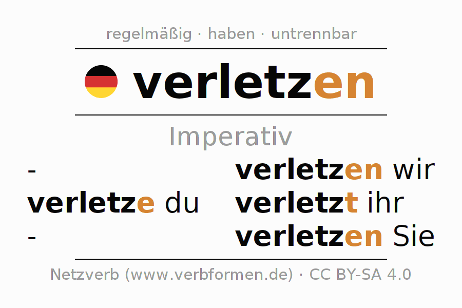 Das Verb verletzen vollständig in allen Personen und Numeri im Imperativ Präsens konjugiert