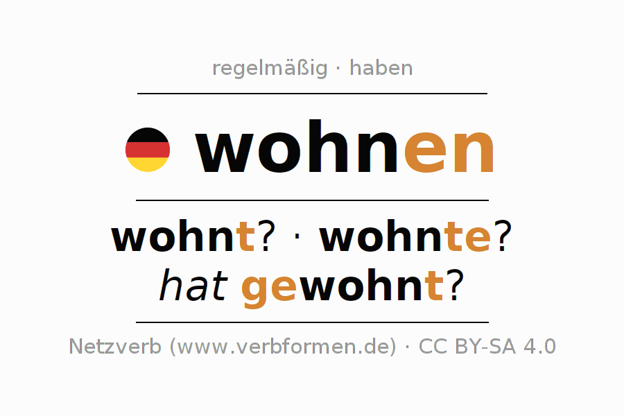 Die Konjugation von wohnen im Imperativ Präsens Befehlsform Aktiv ist: wohne (du), wohnen wir, wohnt (ihr), wohnen Sie.Die Bildung dieser Formen entspricht gewissen grammatischen Regeln. So auch die Vorgaben zur Konjugation der einfachen Verbformen von wohnen im Imperativ. 4Kommentare ☆5.0