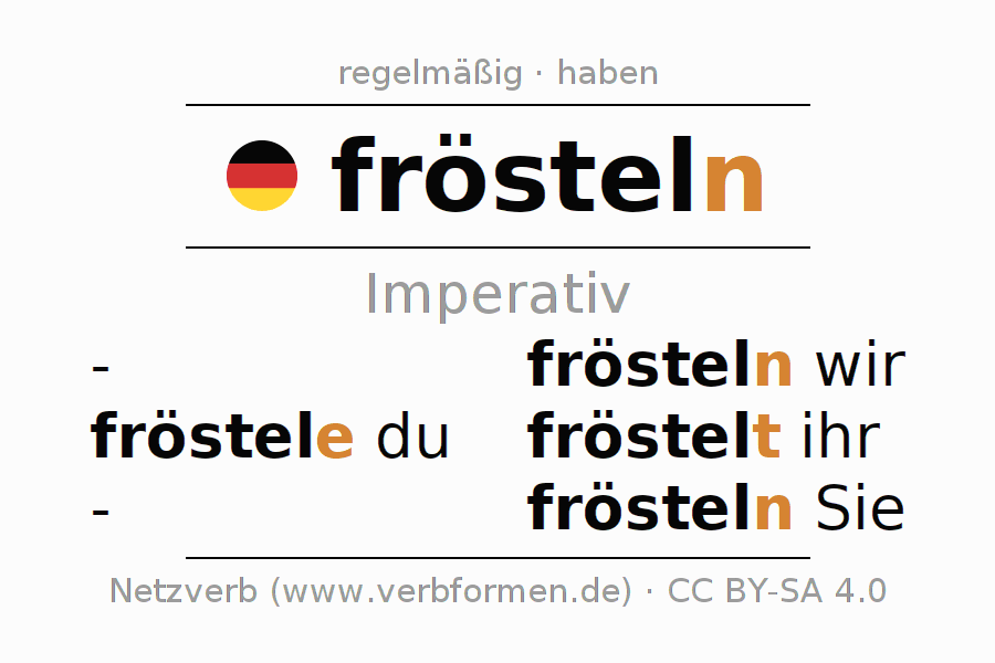 Das Verb frösteln vollständig in allen Personen und Numeri im Imperativ Präsens konjugiert