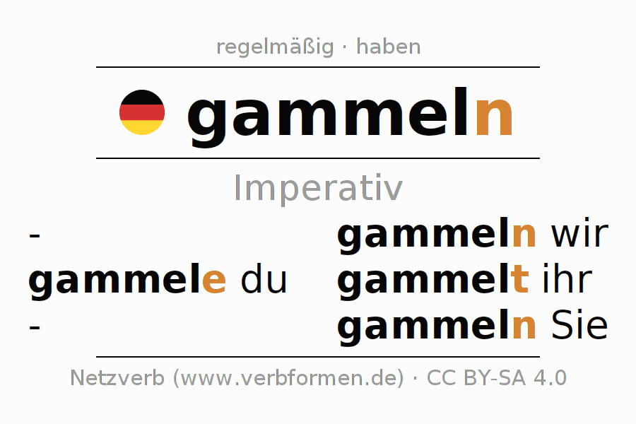 Das Verb gammeln vollständig in allen Personen und Numeri im Imperativ Präsens konjugiert