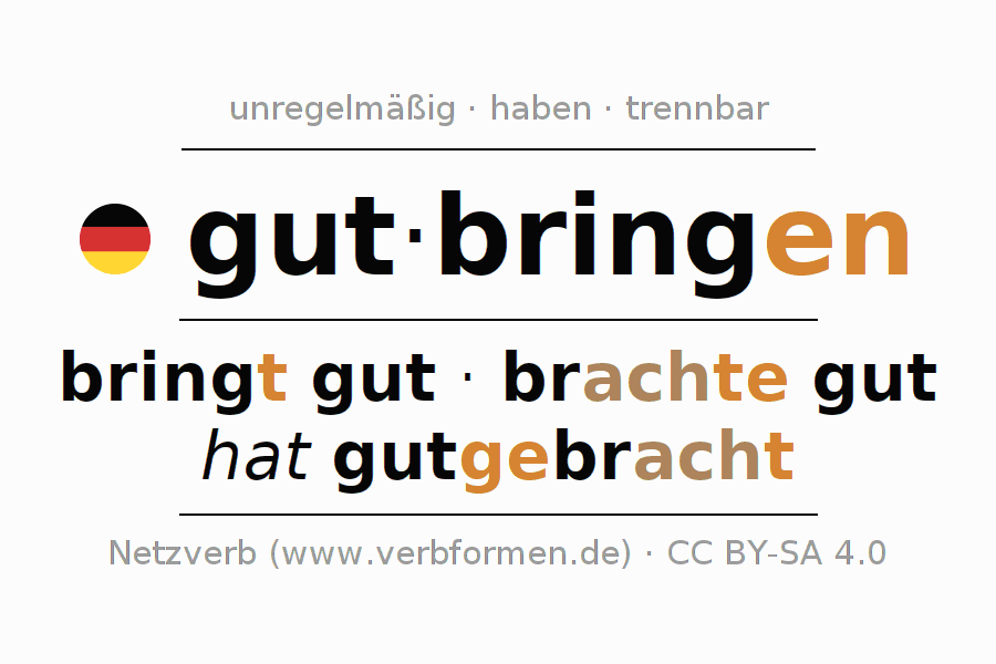 Das Verb gutbringen vollständig in allen Personen und Numeri im Imperativ Präsens konjugiert