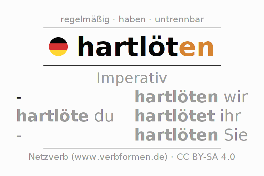 Das Verb hartlöten vollständig in allen Personen und Numeri im Imperativ Präsens konjugiert