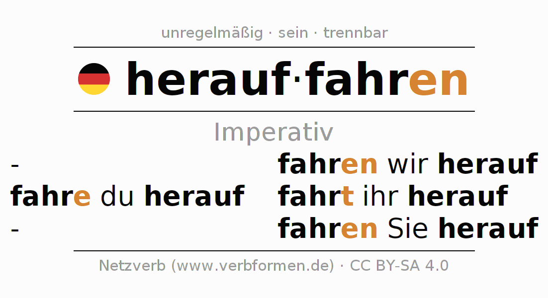 Das Verb herauffahren vollständig in allen Personen und Numeri im Imperativ Präsens konjugiert