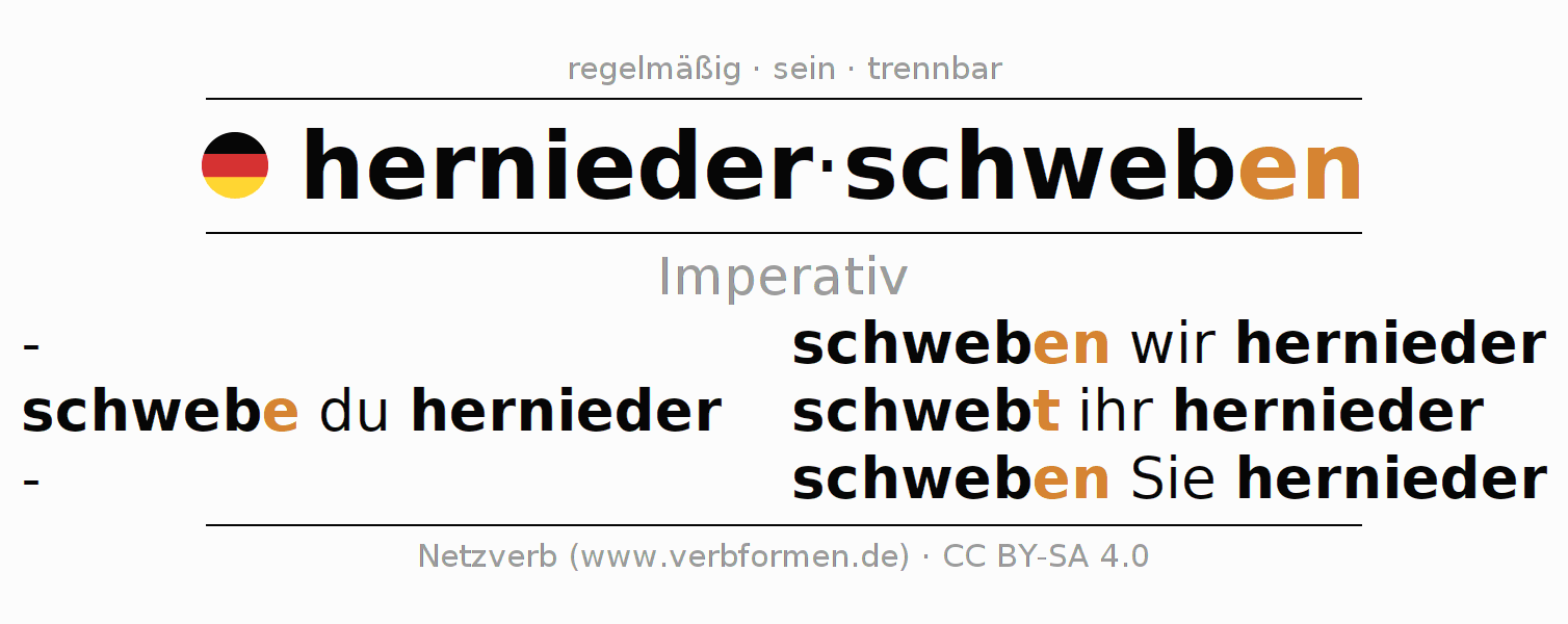 Das Verb herniederschweben vollständig in allen Personen und Numeri im Imperativ Präsens konjugiert