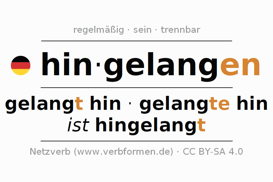 Das Verb hingelangen vollständig in allen Personen und Numeri im Imperativ Präsens konjugiert