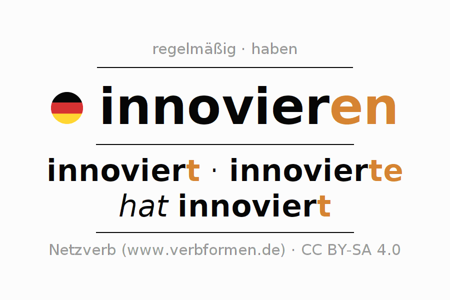 Das Verb innovieren vollständig in allen Personen und Numeri im Imperativ Präsens konjugiert