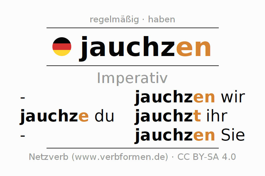 Das Verb jauchzen vollständig in allen Personen und Numeri im Imperativ Präsens konjugiert