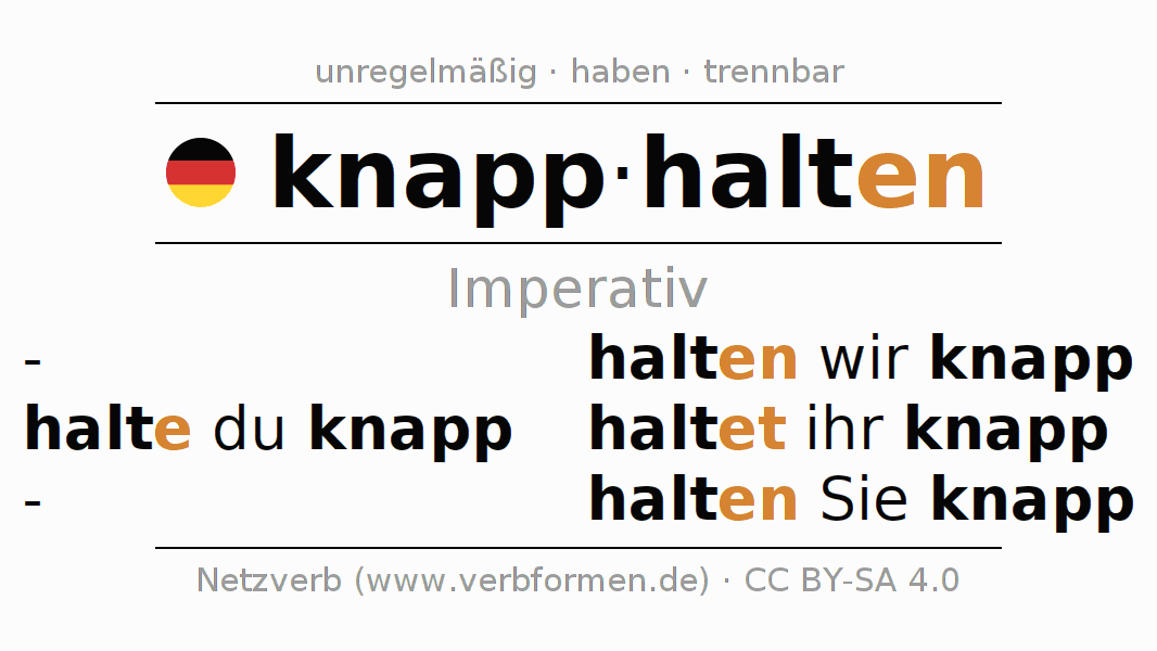 Das Verb knapphalten vollständig in allen Personen und Numeri im Imperativ Präsens konjugiert