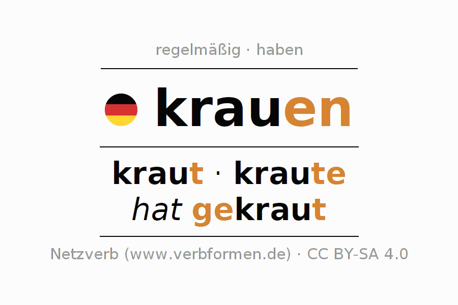 Die Formen der Konjugation von krauen im Imperativ sind: kraue (du), krauen wir, kraut (ihr), krauen Sie
