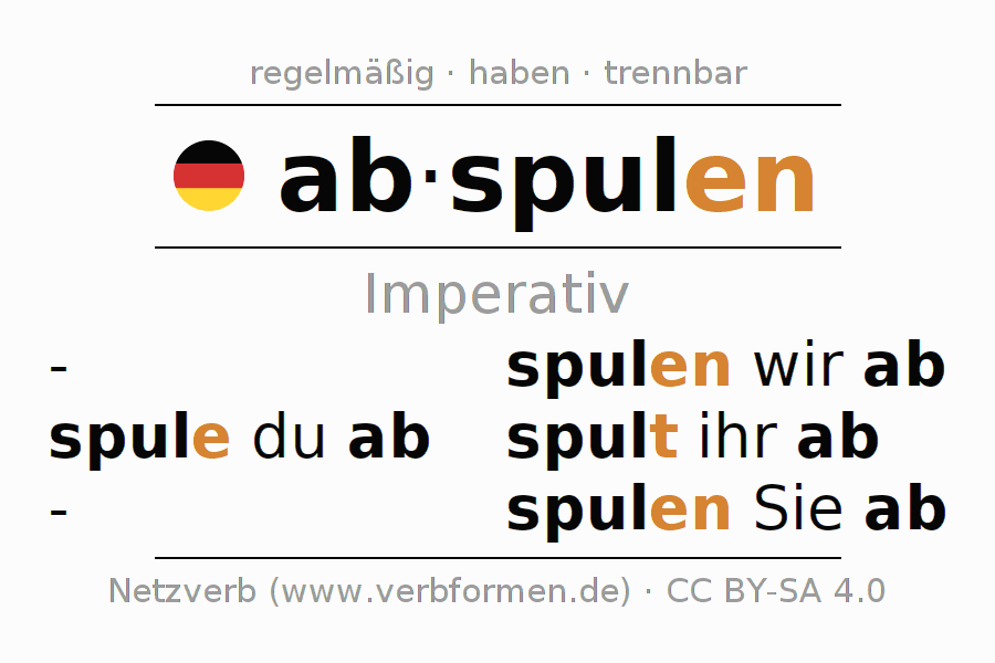Das Verb abspulen vollständig in allen Personen und Numeri im Imperativ Präsens konjugiert