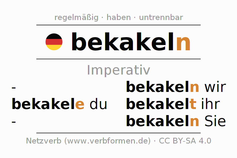 Das Verb bekakeln vollständig in allen Personen und Numeri im Imperativ Präsens konjugiert