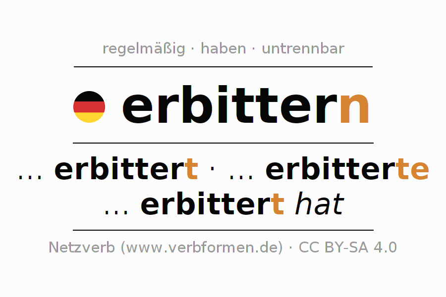 Das Verb erbittern vollständig in allen Personen und Numeri im Imperativ Präsens konjugiert