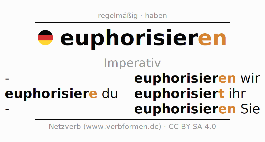 Das Verb euphorisieren vollständig in allen Personen und Numeri im Imperativ Präsens konjugiert