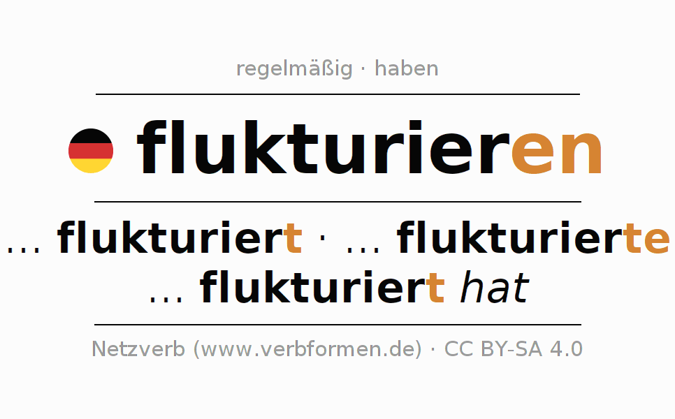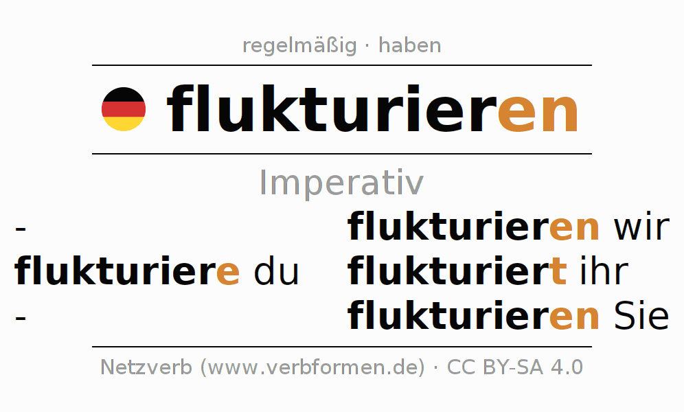 Das Verb flukturieren vollständig in allen Personen und Numeri im Imperativ Präsens konjugiert