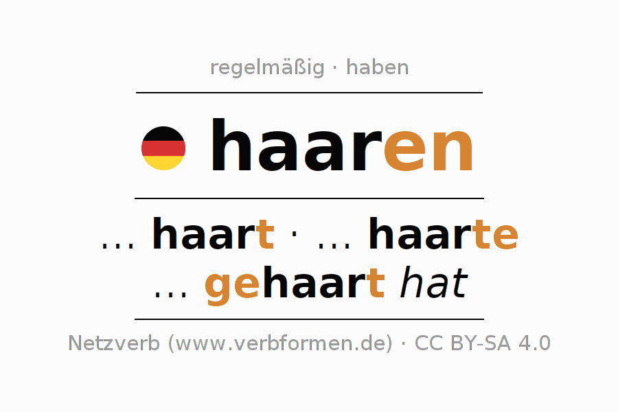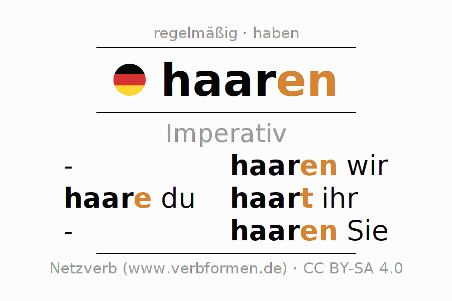 Das Verb haaren vollständig in allen Personen und Numeri im Imperativ Präsens konjugiert