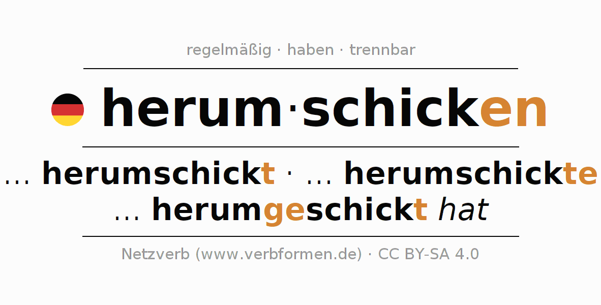 Das Verb herumschicken vollständig in allen Personen und Numeri im Imperativ Präsens konjugiert