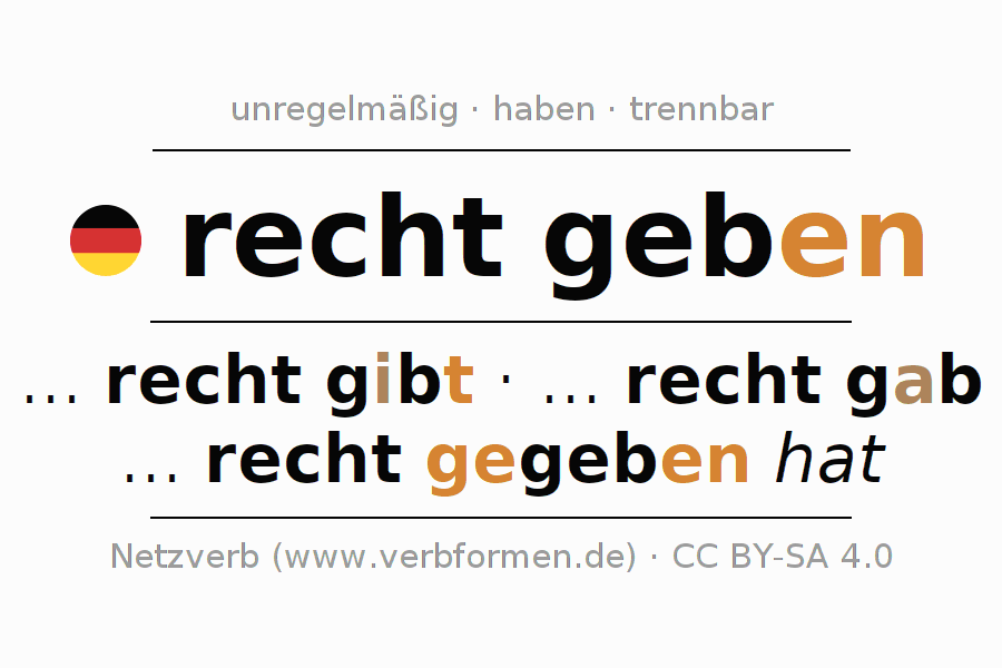 Das Verb rechtgeben vollständig in allen Personen und Numeri im Imperativ Präsens konjugiert
