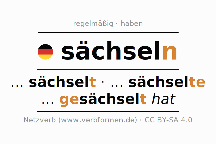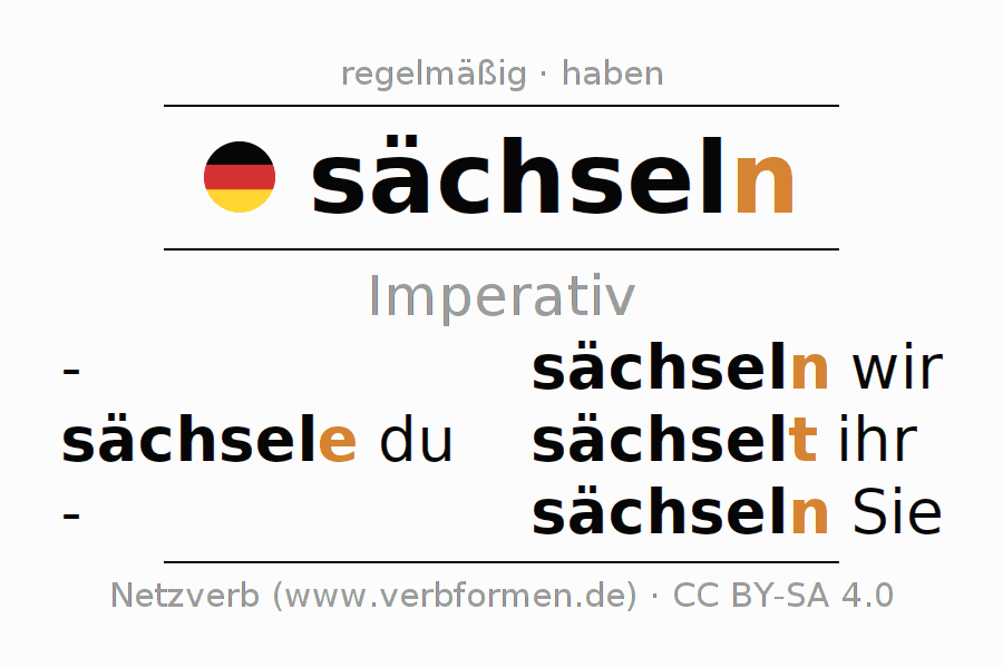 Das Verb sächseln vollständig in allen Personen und Numeri im Imperativ Präsens konjugiert