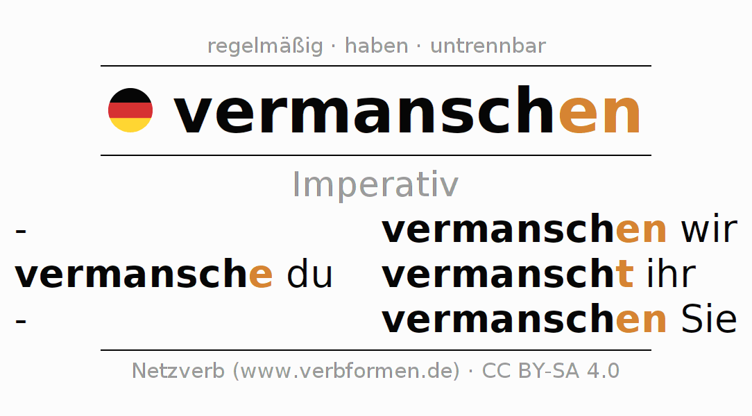 Das Verb vermanschen vollständig in allen Personen und Numeri im Imperativ Präsens konjugiert