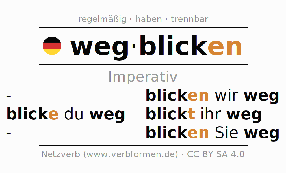 Das Verb wegblicken vollständig in allen Personen und Numeri im Imperativ Präsens konjugiert