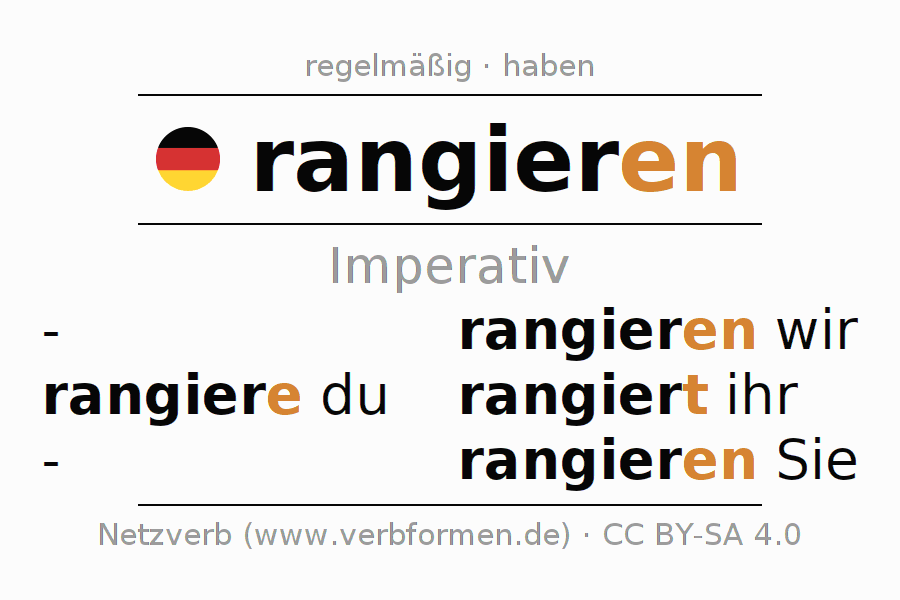 Das Verb rangieren vollständig in allen Personen und Numeri im Imperativ Präsens konjugiert